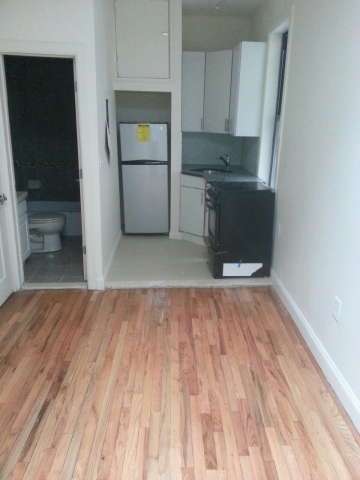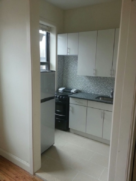 Beautiful studio with separate bedroom. Features exposed brick, fireplace, central air and heat. Kitchen has white lacquerd cabinets, tiled backsplash, new refrigerator and stove.