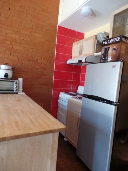 Furnished luxury designer studio! Tastefully decorated! Brand new shower and kitchen. Original hardwood floors. Custom Tiffany lighting fixture, exposed brick, breakfast bar and overhead storage. New tiles in the kitchen, and bathroom. A must see.