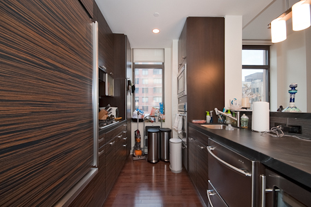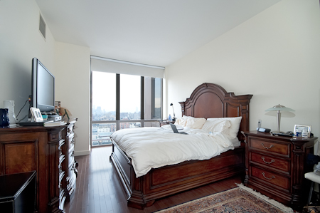Upon entering this 1,286 sf luxurious 2-bedroom/2-bath home in the sky, you are greeted with a stunning view overlooking the tops of New York City to the south framed by the huge panoramic windows at the far end of the 322 sf open living/dining room, complete with a 60 sf balcony.