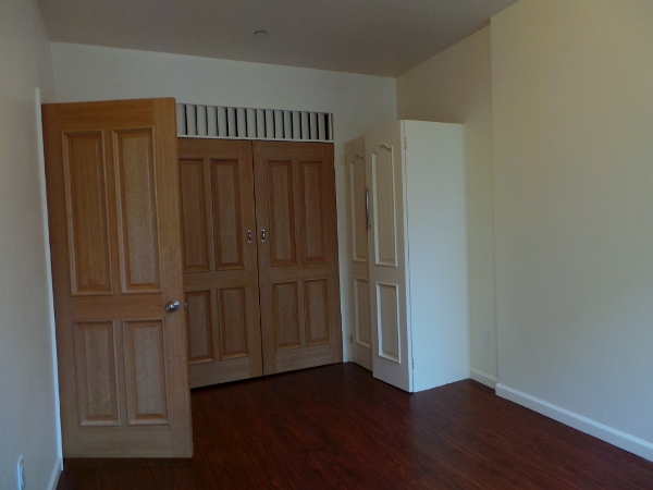 Large spacious bedroom has high ceilings and polished floors. Large bedrooms can accommodate queen or full sized bed. Custom closets! Master bathroom has mosaic tiled shower stall a granite vanity.