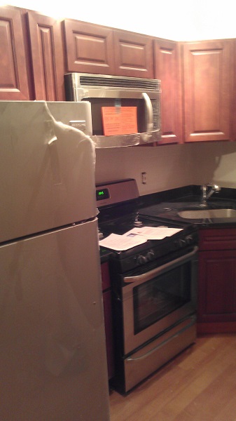 This is a must see! Sunny 1 Bedroom with large windows, select grade hardwood floors, and high ceilings. Freshly painted. Exposed brick, new cherry kitchen cabinets, black granite countertops, stainless steel appliances and dishwasher. Luxurious marble tiled bathroom and floors, granite top cabinet sink. Track lighting in the living room. .