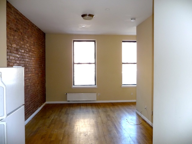 This renovated 650 sf apt, with two small bedrooms is on the corner of Madison Avenue and East 132 Street. The galley kitchen with a granite countertop, dishwasher and microwave opens into the living/dining area with an exposed brick wall, hardwood floors and two west facing windows. The corner bedroom has two windows, one facing west and the other north. Both the kitchen and the marble floor/subway-tiled bathroom have working windows for fresh air. Good on-the-street parking. This is a great starter apt. Shares and guarantors are ok. Call Ruthann today to view.