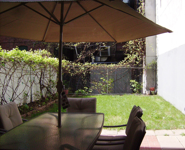 This splendid three bedroom duplex has so much space! Bonus - All utilities are included in the rent!. Extra 900 SQFT of storage space in the basement! It features a backyard with green grass and grape vines, patio furniture and the gas grill perfect for entertaining or simply just relaxing. New LG Stainless steel french door refrigerator, copper tile backsplash and accents, granite countertops, dishwasher, microwave, and pantry closet complete the kitchen. Serve through adjoins the large and spacious living and dining room area. Gleaming hardwood floors and exposed brick ad the right charm. All bedrooms are spacious and large. The master bedroom is loaded with closet space and can fit a king sized bed comfortably! Make an appointment today with Elaine Perry at 917 841-3230 Lease Terms: 12-24 Months. ! Month Rent, 1 Month Security, 1 Month Broker Fee.
