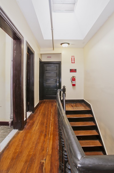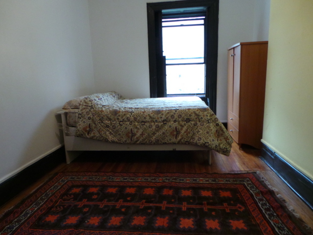 Large spacious room facing west. Features hardwood floors, high ceilings, and a private sink and toilet.