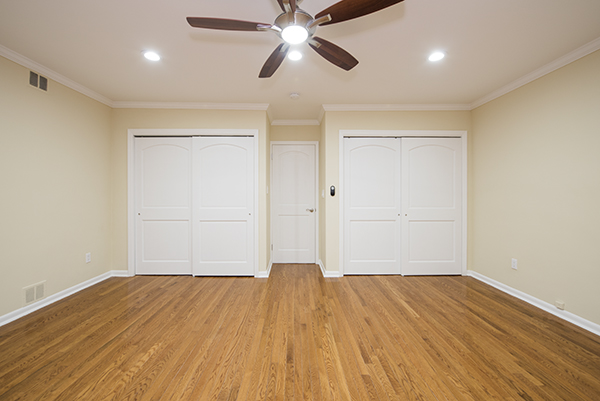 Beautiful polished oak hardwood floors and LED recessed lighting and ceiling fans in the living room and master bedroom.