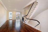 Features 11' ceilings, beautifully renovated walnut floors and stairway; inlaid marble center hall entry and intricate crown molding detail.