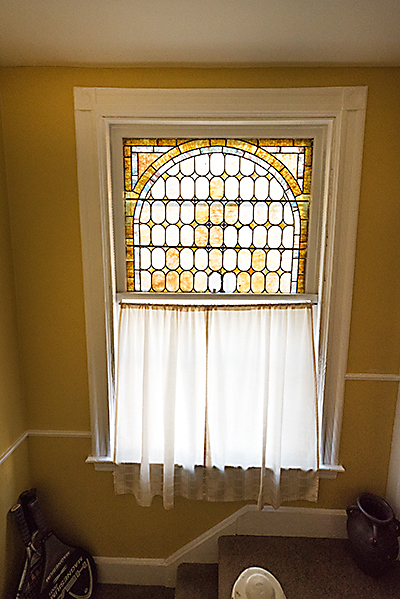 Level 2: Grand entry foyer with stained glass, and original oak banister leading to 2 Bedrooms, renovated kitchen, formal living/dining, full bathroom.