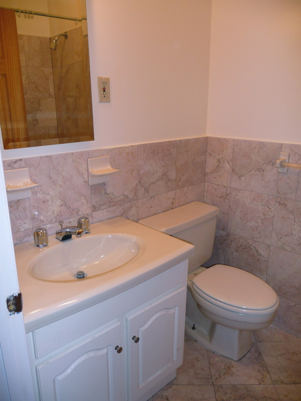 The large 205 sf dining/kitchen features tons of cabinets, granite counter, stainless appliances, dishwasher, washer/dryer combo, microwave–-and a very convenient granite-topped floating island. The 288 sf bedroom/living room has two large windows overlooking ACP Blvd, a huge 42 sf walk-in closet, ceiling fan and central AC!
