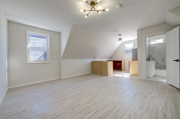 The second floor apartment has 4 bedrooms and 2 baths. Its is 1400 sqft and can be rented for $3700 per month. The private loft is a 1 bedroom 1 bathroom on the third floor can be rented for $1900 per month.