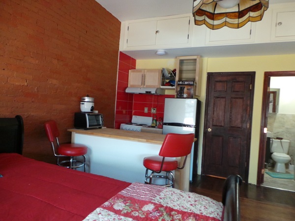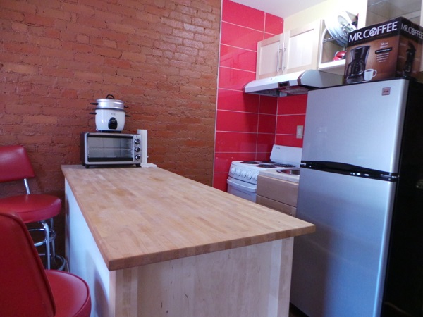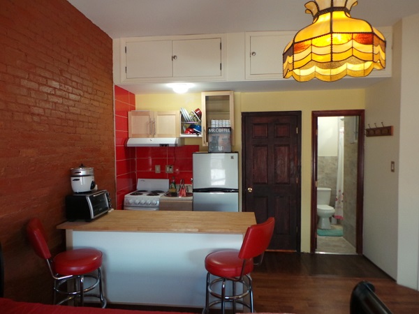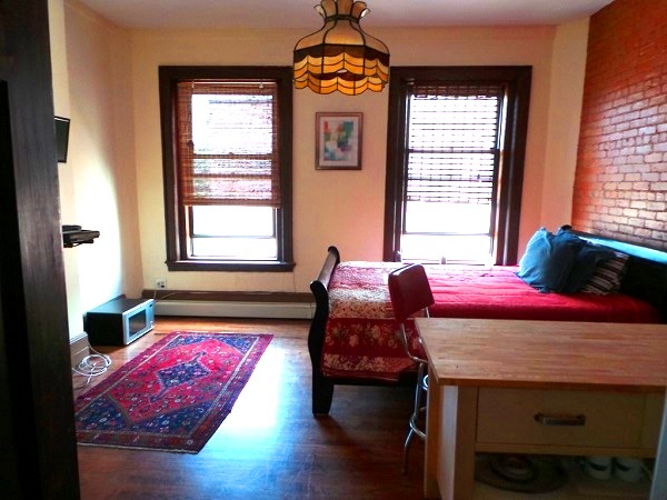 Furnished luxury designer studio! Tastefully decorated! Brand new shower and kitchen. Original hardwood floors. Custom Tiffany lighting fixture, exposed brick, breakfast bar and overhead storage. New tiles in the kitchen, and bathroom. A must see.