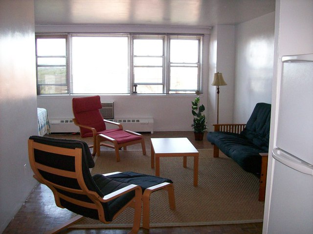 Pristine spacious furnished studio apartment in Brooklyn College area. Flooded with lots of sunlight, parquet floors and newly renovated bathroom. Bed, dinette set, futon and night stands included. Building amenities include in-house laundry room, hair salon, outdoor swimming pool and 24/7 security guard service. Located at the end of the IRT train line (#2, #5) 30 minute commute to downtown Manhattan. Co op Board Application Fee and credit check/income verification & fee required. Co-op board approval also required