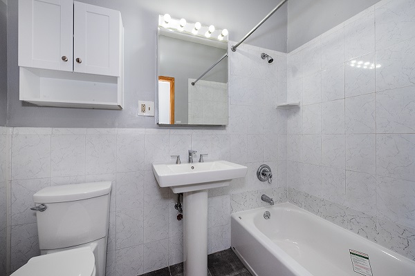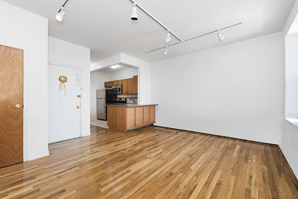 This renovated apartment features stainless steel appliances and a dishwasher. Living Room and bedrooms have gleaming hardwood floors, track lighting, and plenty of closet space. Brand new tub and vanity in the bathroom.