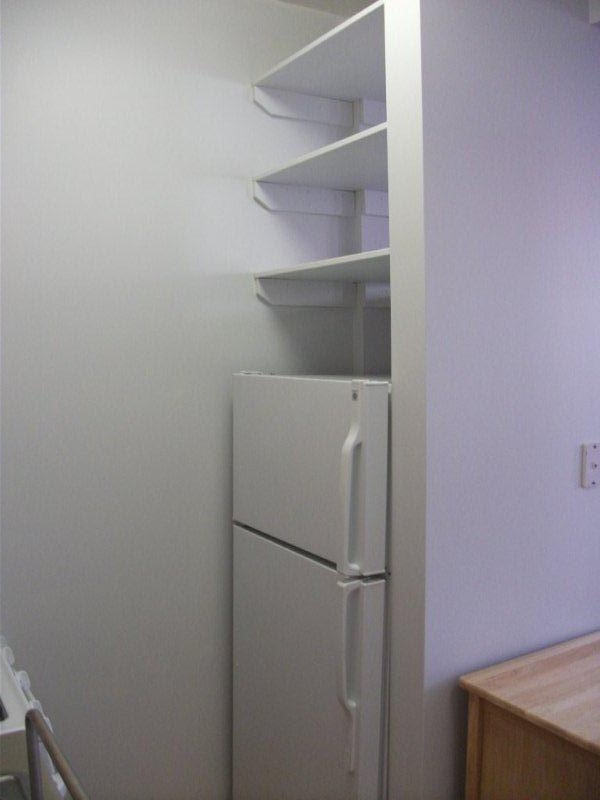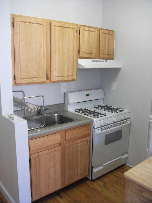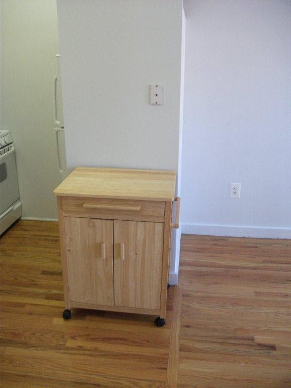 This wonderful gem features polished hardwood floors, Hotpoint Stove, GE Refrigerator, Butcher block microwave stand, oak kitchen cabinets, ceiling fan, built in shelves, window shades, high ceilings.