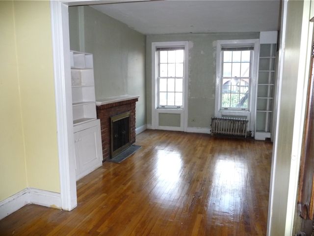 The four multi-paned windows in the living room and bedroom face north overlooking the cobblestone street with a view of the Hudson to the west. The living room and bedroom each feature exposed brick and a decorative fireplace with the potential to be relined and activated.