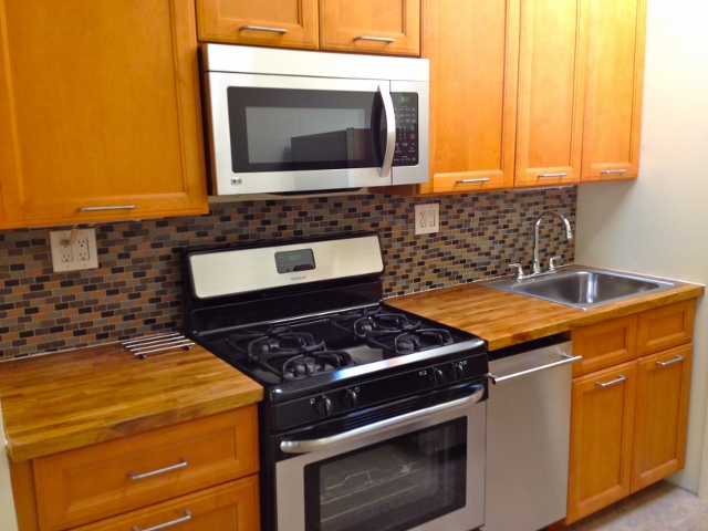 Large Sun Filled Studio with Sleeping Alcove and Skylights! Very high ceilings, exposed brick, recessed lighting, hardwood floors stainless steel appliances. Maple cabinets and butcher block countertops. Marble bathroom has skylight! Everything in this apartment is brand new! Must See! Ready May 1st.