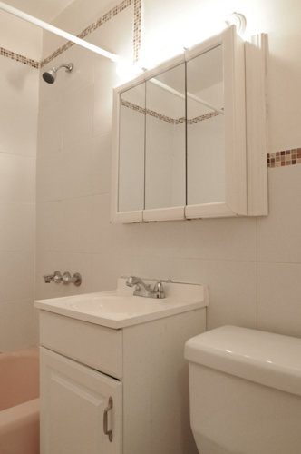 Upgraded bathroom and hallway closet.