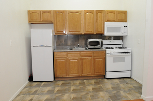 The apartment features brand new gleaming hardwood floors, large living room oak kitchen cabinets, marble counter top and back splash. High ceilings throughout.