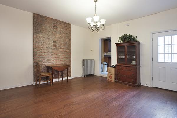 The inviting living room has original 10 inch original cherry baseboard moldings, window shutters, and oak spindled center stairway. Oak hardwood floors. Exposed brick dining room and updated kitchen lead to the new deck and patio.