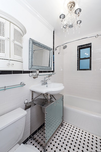 Living room with french door closet. Decorative lighting. Designer bathroom with beautiful chandelier and custom cabinetry with built in shelves.