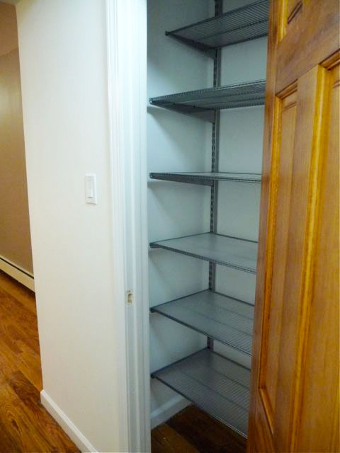 This garden rear alcove studio is just your size—with a large 192sf living area, separate kitchen with window and stainless appliances, a huge walk-in closet and kitchen pantry both featuring handsome and efficient Elfa System shelving, and window access to the backyard shared with the owners upstairs.