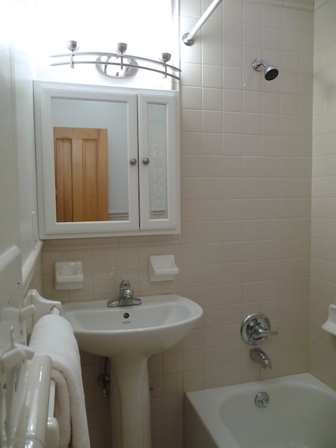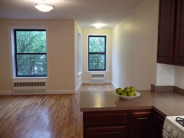 This apt also features hardwood and tile floors, a new open kitchen with good counter space, new bath with a pedestal sink, two large closets, excellent north/south light — and heat/ hot water are included in the rent!