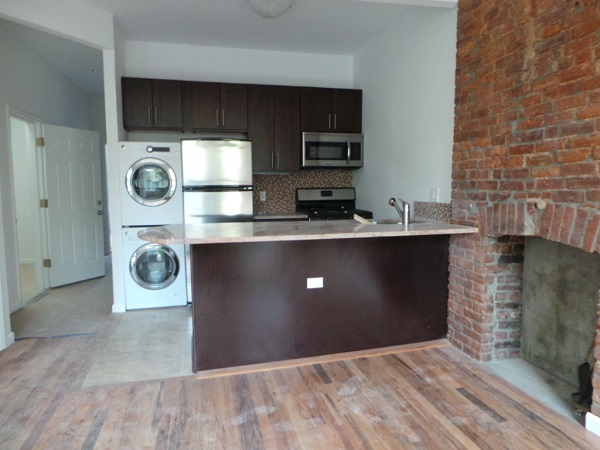 It features wonderful exposed brick and fireplace, oak hardwood floors, and designer kitchen and bathroom.