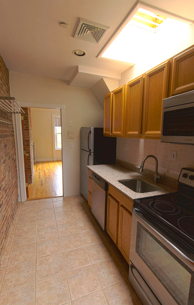 Come home to over 720 sf of light-flooded space with 3 skylights, washer/dryer, central AC, stainless & granite kitchen, dishwasher, microwave, garbage disposal, exposed brick walls, Victorian stained glass, and—the piece de resistance—a romantic clawfoot tub perfect for soaking by candlelight. You’ll also enjoy sunset, a fresh breeze and view from the private roof deck.