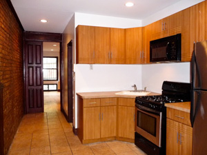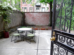 This huge 1-bdrm/1.5-bath garden floor-thru features a living/dining room with a original oak wainscotting, window pocket shutters,carved fireplace mantle, exposed brick, galley kitchen with microwave,hardwood and tile floors, Victorian detailing and—the piece de resistance in NYC—exclusive access to the backyard garden.
