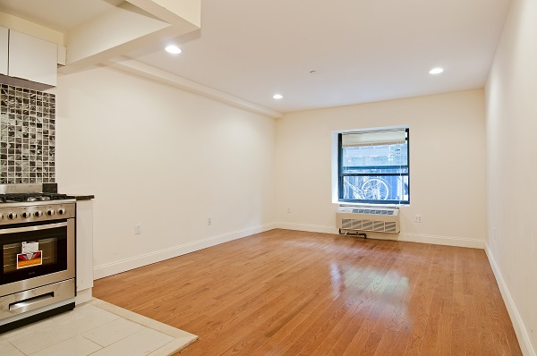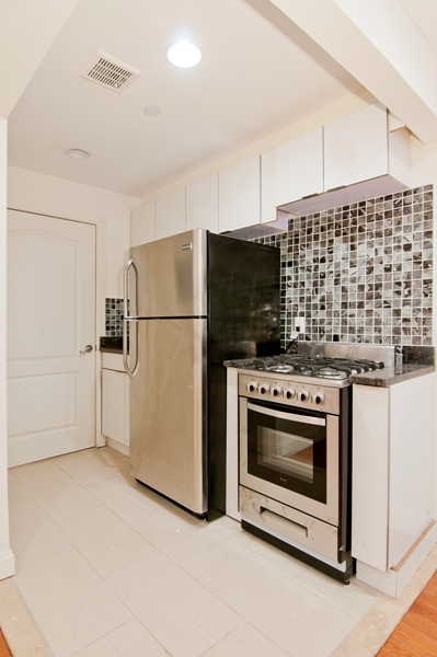 Luxury large studio.  Features brand new stainless steel appliances, white lacquer kitchen cabinets and granite countertops.
