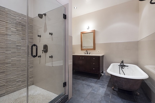 Delightful spacious bathroom features shower and original claw foot soaking tub, sink and skylights that bring natural light.