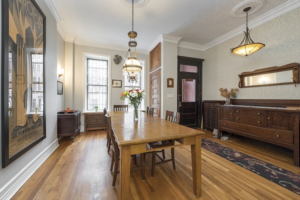 Energy efficient double pane insulated windows with internal storm windows on parlor and second floor. Central air split system on the parlor floor. 3" and 2.25 " plank hardwood floors with radiant heat. Original Tiffany inlaid tiled foyer.