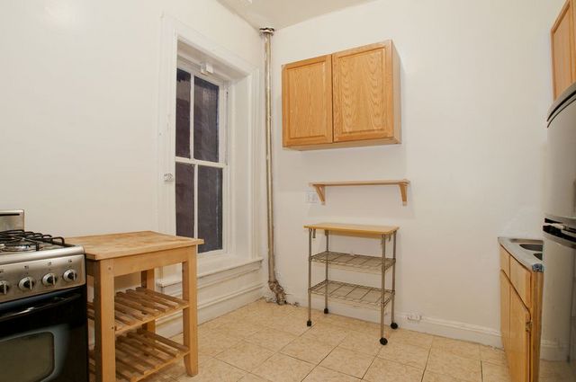 Elevator building 1 bedroom features full sized window kitchen with stainless steel appliances. Large closets in bedroom and hallway. High tray ceilings, picture frame railing, original wooden doors with stained glass transome, and beautiful refinished hardwood floors.