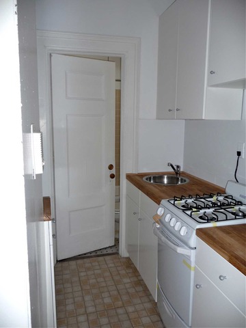 The studio is spacious with hardwood floors, two large closets, efficient galley kitchen, decorative fireplace and a skylight in the bathroom.
