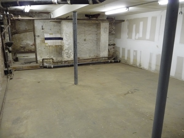 Step down into a large, garden-level space that features 1,390 sf of open front area with three entrances, a 160-sf back room suitable for a kitchen or office, nine large windows with three exposures, 9’ high ceiling and 450+ sf storage in the cellar.