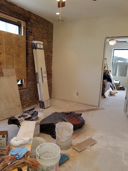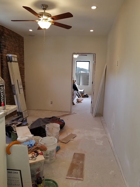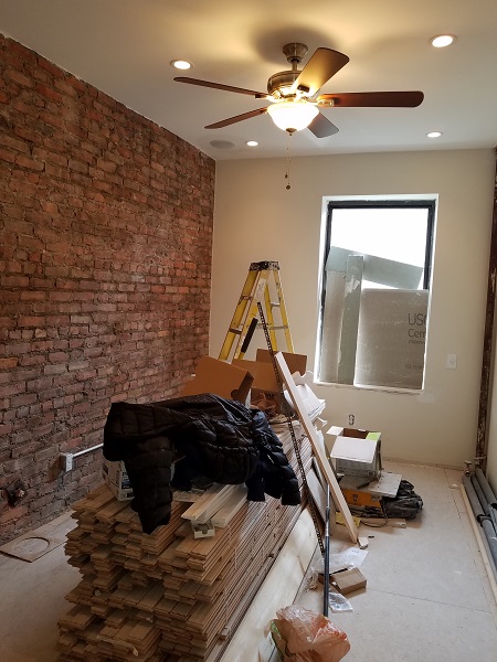 The floors throughout the apartment has been leveled. This unit has exposed brick walls, recessed Led lights throughout the apartment. Ceiling fans in the living room and bedroom. Hardwood floors are being installed in the living room, bedroom and hall areas. Cable lines and speakers wiring are hidden within the walls and ceiling. New electrical wiring throughout the unit.