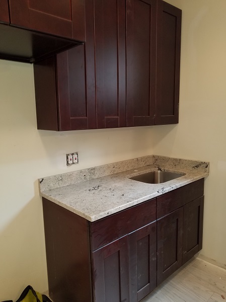 This unit has marble floors in the kitchen and entrance area. Espresso kitchen cabinets with Granite counter tops.