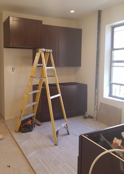 This warm and sunny apartment is on the 2nd floor of a walk-up building is in the process of being renovated.