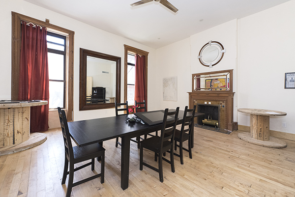 This spectacular space is 22 ft wide and 65 ft deep offers 1320 square feet of “open sunny loft space” on every floor. 5 floors feature soaring 14 ft ceilings, full modern kitchen, formal dining room, 6 finished bathrooms, eco-friendly materials, and marble fireplaces.