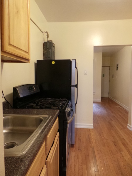 Freshly painted and renovated large 1 bedroom features brand new eat in kitchen, new kitchen cabinets, new countertop and stainless steel appliances. Bathroom is completely renovated. Hardwood floors and decorative lighting. Large closet in the bedroom.