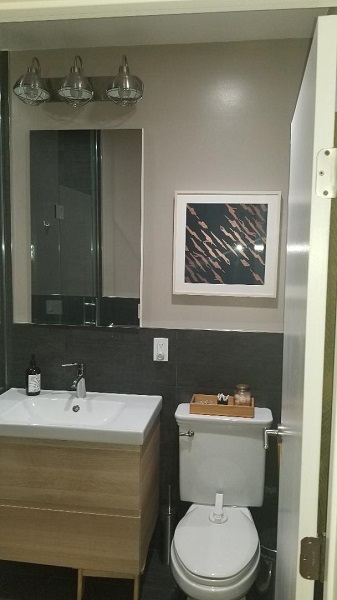 - Slate bathroom shower stall and walls